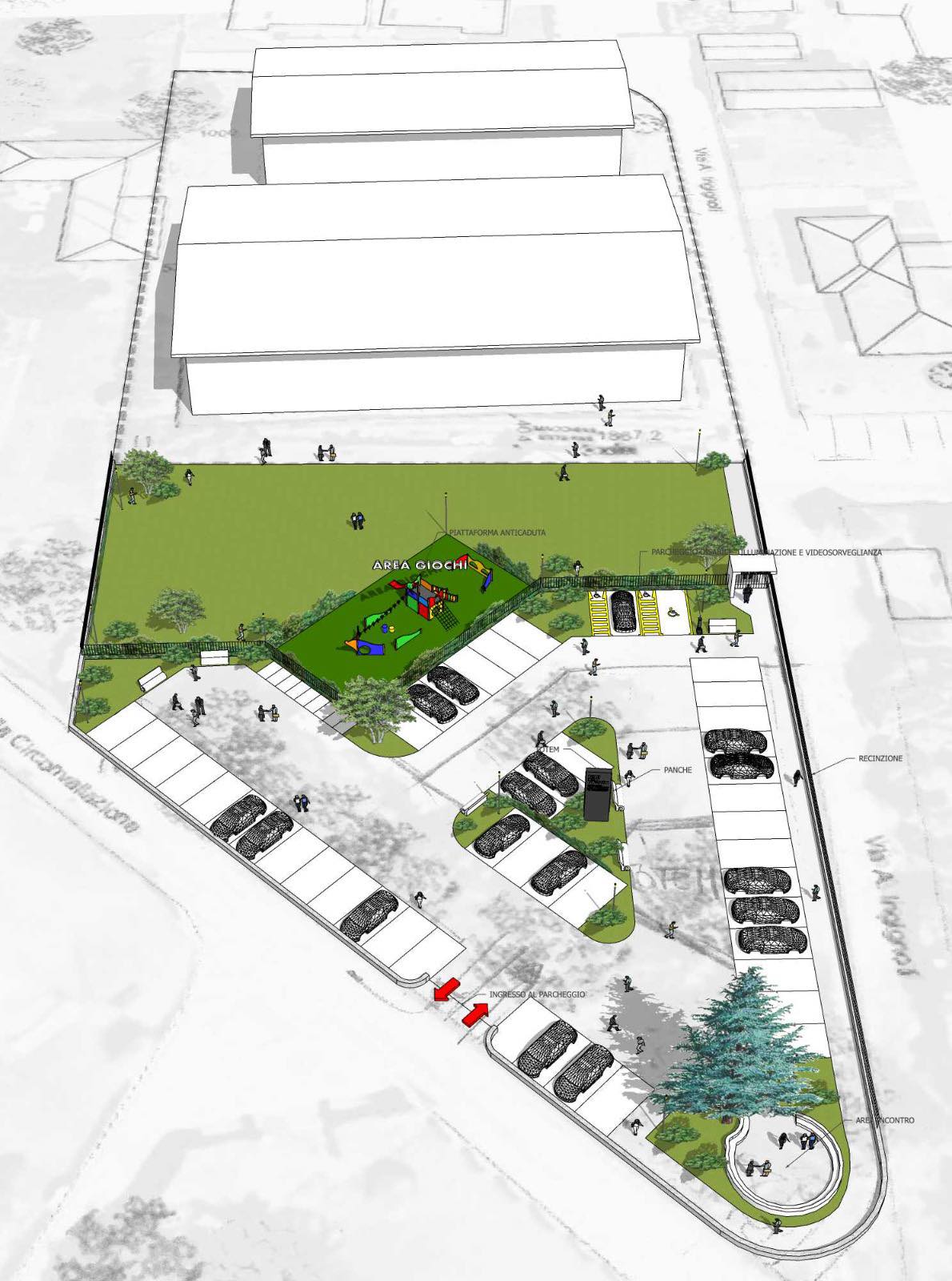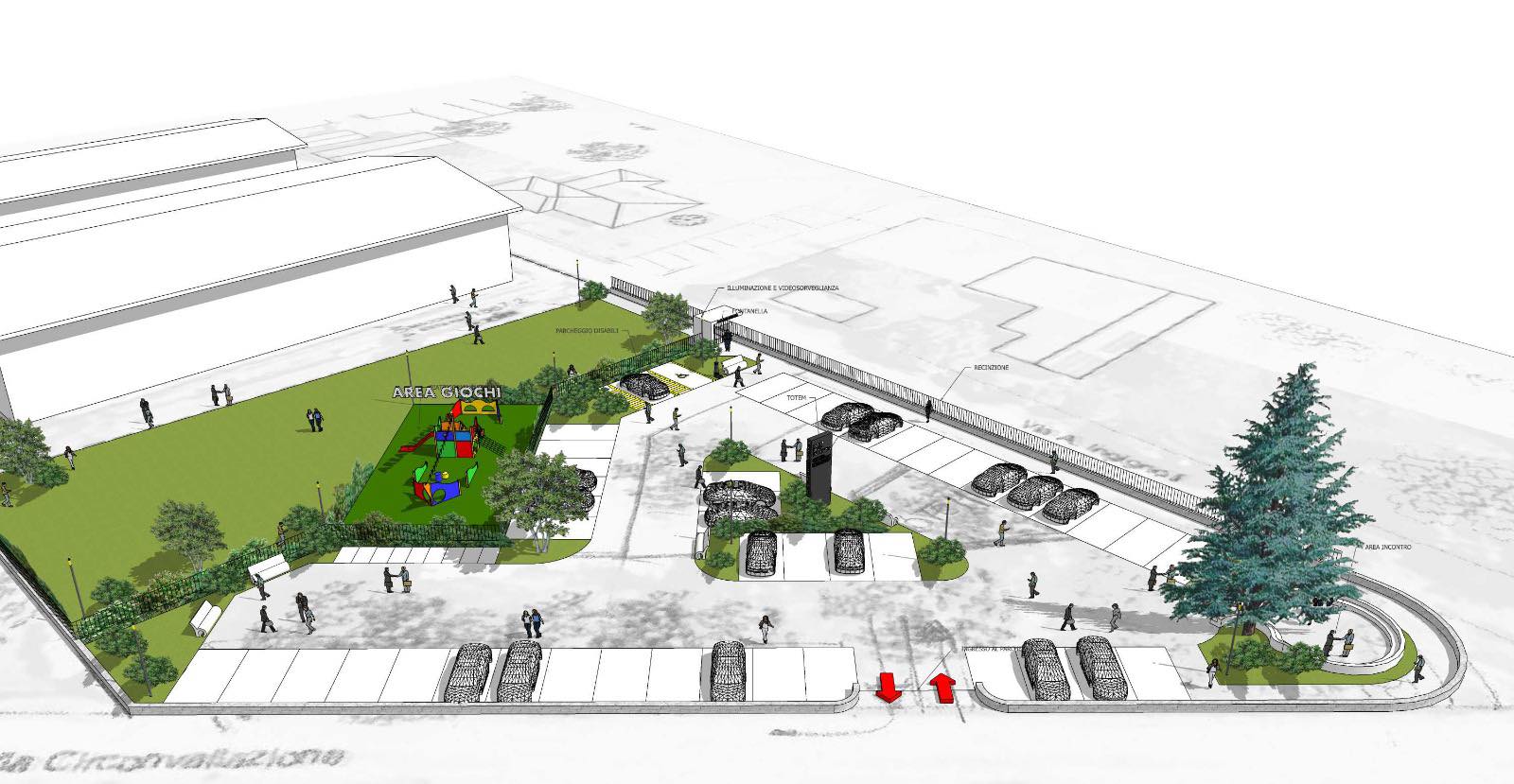 La Scuola dell’Infanzia verrà aperta e inaugurata nel 2026 una volta che verrà completata la nuova viabilità a servizio dell’intero polo di cui un esempio ancora da valutare complessivamente è già stato studiato ed è in corso di definizione (alcune foto in allegato!).
