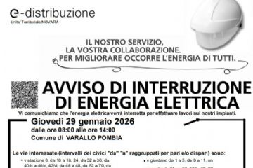 Per il prossimo 29 gennaio dalle ore 8 alle ore 14 è in programma l'interruzione di energia elettrica da parte di E-Distribuzione per lavori sugli...
