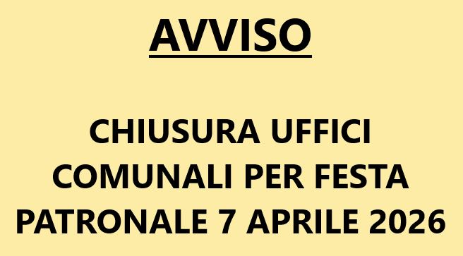 Si avvisa la cittadinanza che in occasione della festa patronale di martedì 7 aprile tutti gli ufficiali comunali resteranno chiusi.