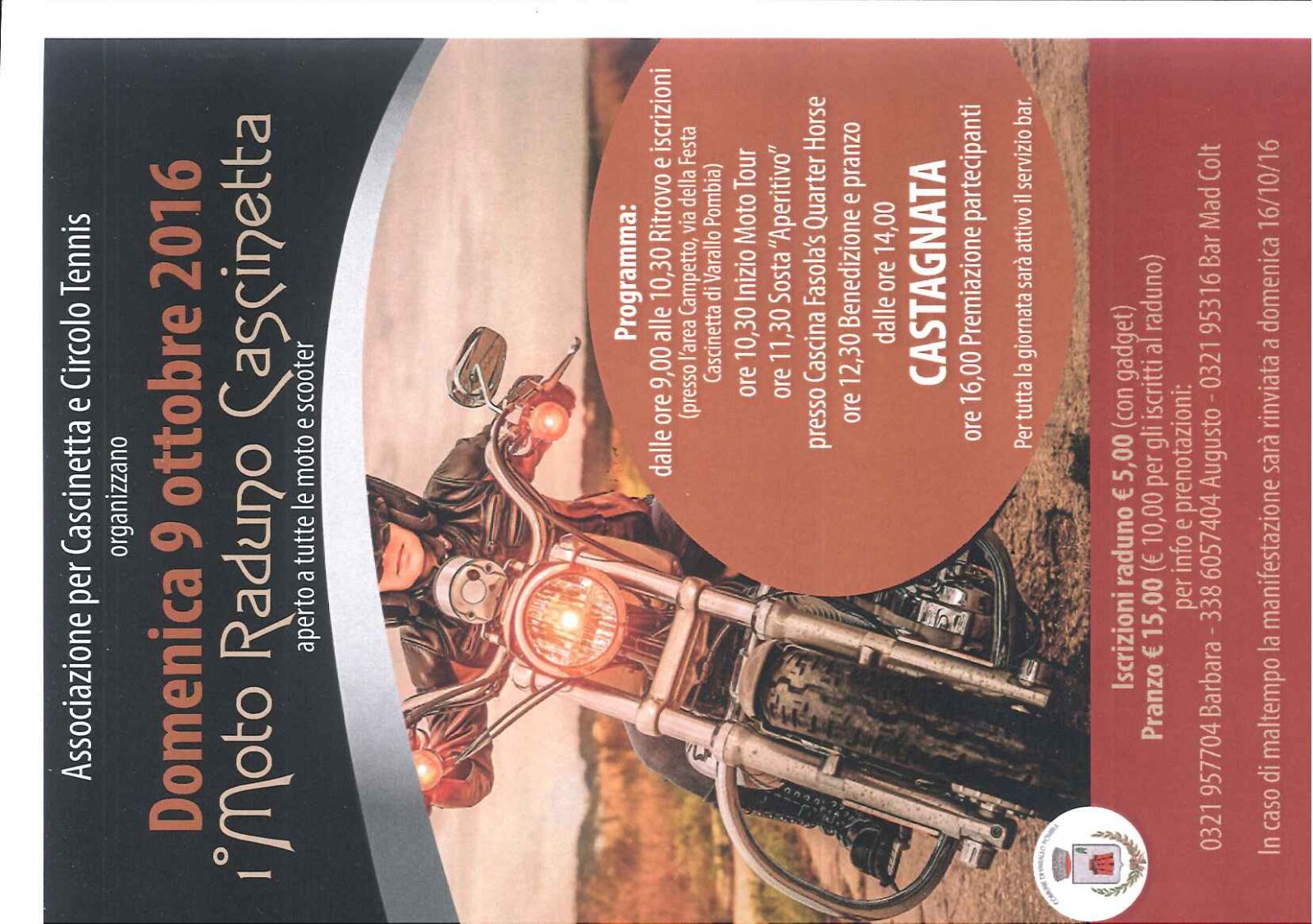 Domenica 9 ottobre 2016 l'Associazione per Cascinetta e Circolo Tennis, organizzano il "1° Moto Raduno Cascinetta" aperto a tutte le moto e scooter.