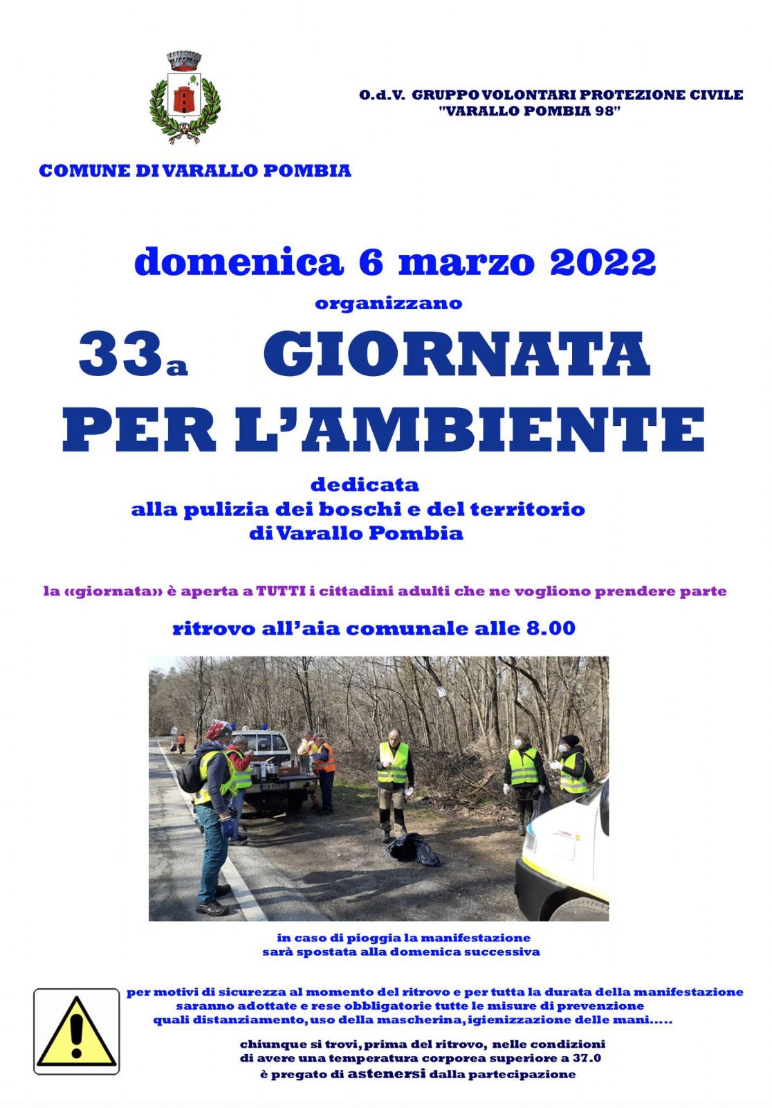 Appuntamento per le ore 8,00 presso l’Aia Comunale, dove i Volontari della Protezione Civile Varallo Pombia 98 coordineranno le operazioni.