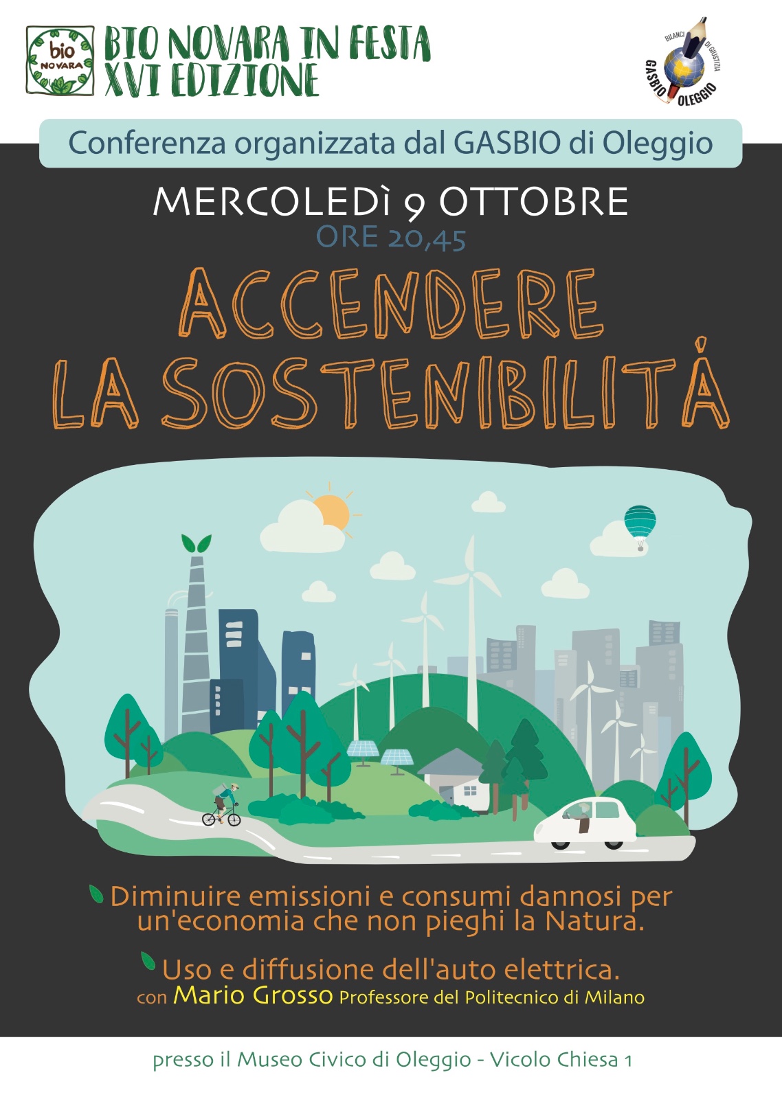 - mercoledi 9 ottobre alle ore 20.45 presso il Museo Civico di Oleggio una serata dedicata alla sostenibilità, con approfondimento sull’auto elettrica;
