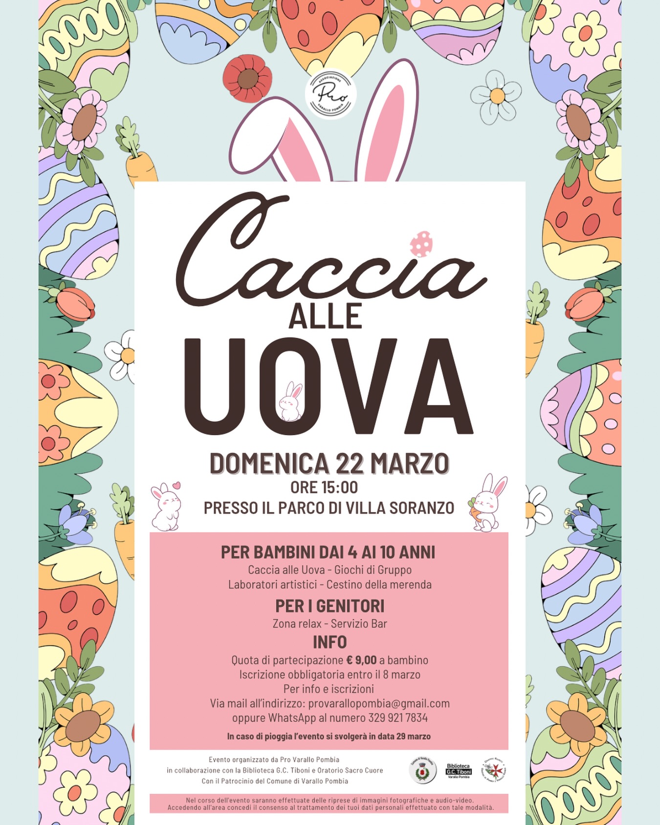 Domenica 22 marzo, vi aspettiamo alle 15:00 presso il Parco di Villa Soranzo per una fantastica Caccia alle Uova!