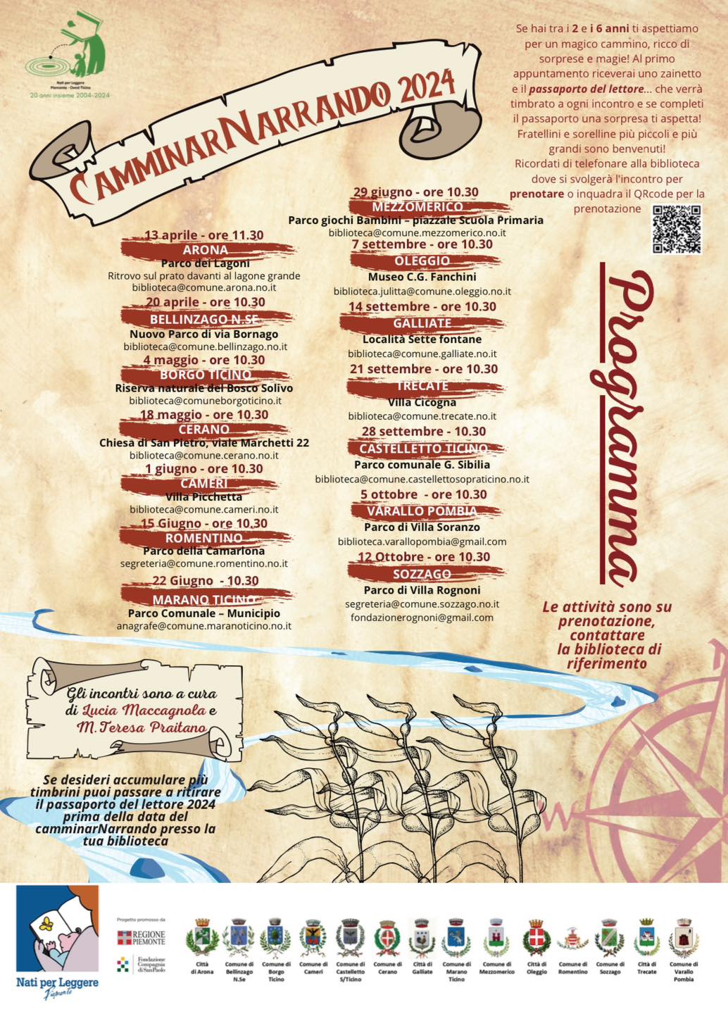 È in partenza sabato 13 aprile da Arona la nuova edizione di Camminar Narrando, un percorso promosso da Nati per Leggere Ovest Ticino in collaborazione con le biblioteche del territorio.