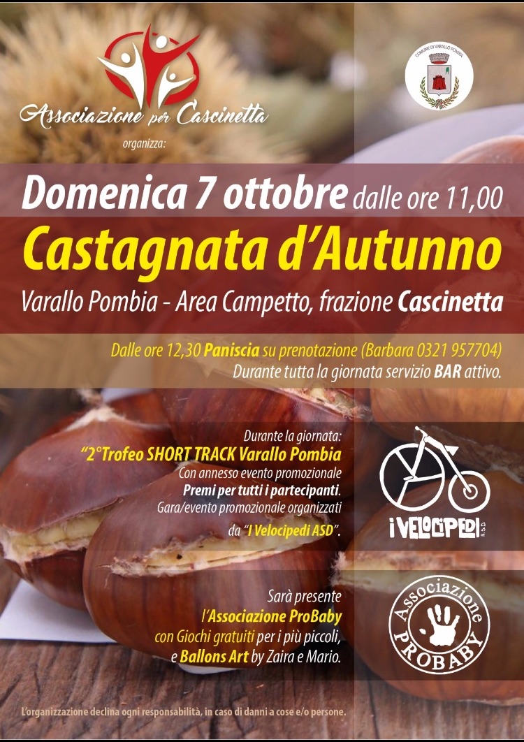 Domenica 7 ottobre dalle ore 11,00 "Castagnata d'Autunno" presso l'area del Campetto - frazione Cascinetta di Varallo Pombia.