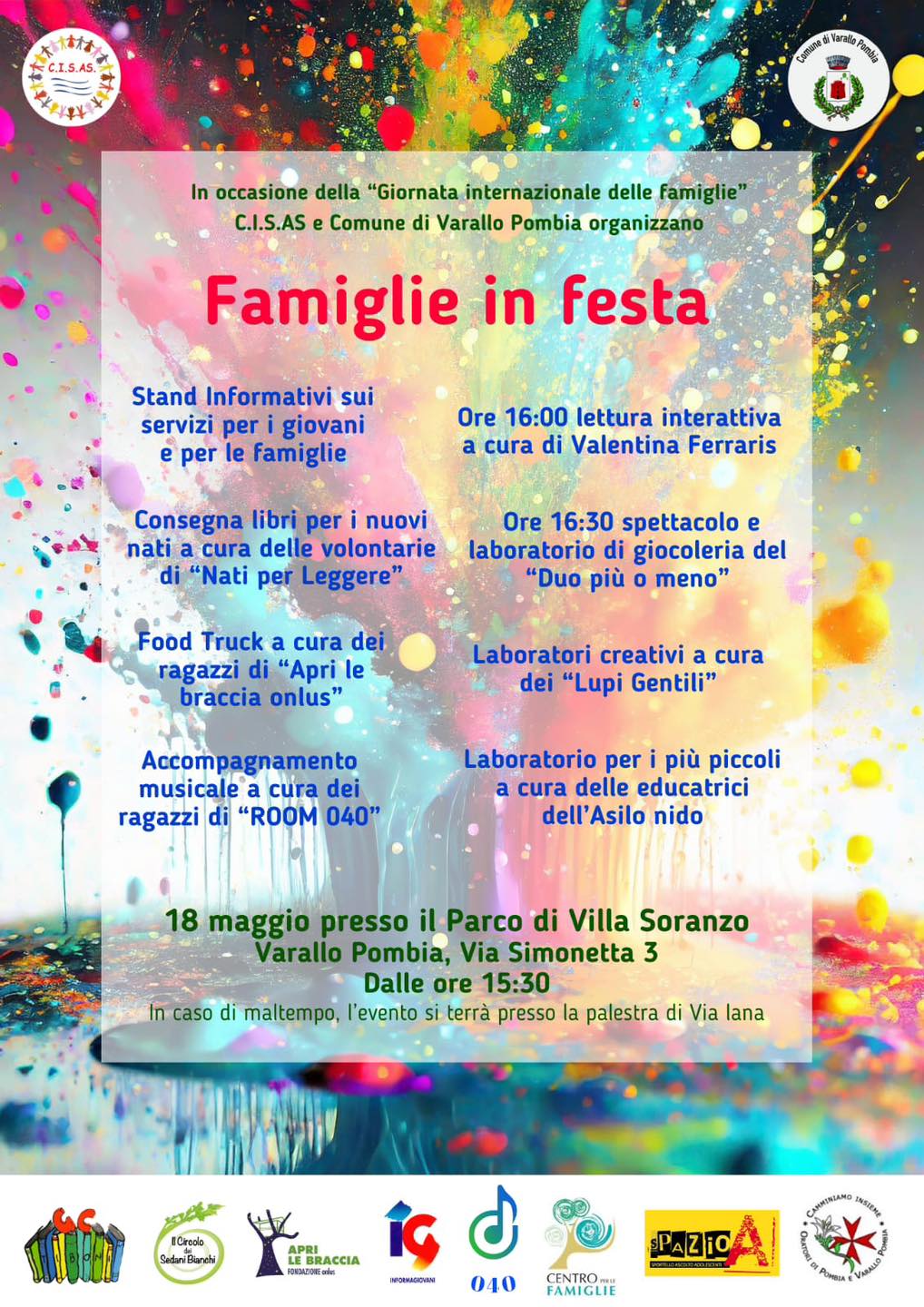 In occasione della Giornata Internazionale delle Famiglie, il CISAS e il Comune di Varallo Pombia, con la collaborazione di molte realtà del territorio, organizzano la prima edizione della "Giornata delle Famiglie", un evento a loro dedicato, con stand informativi per diffondere alla cittadinanza le iniziative proposte, progetti artistici e laboratori da scoprire.