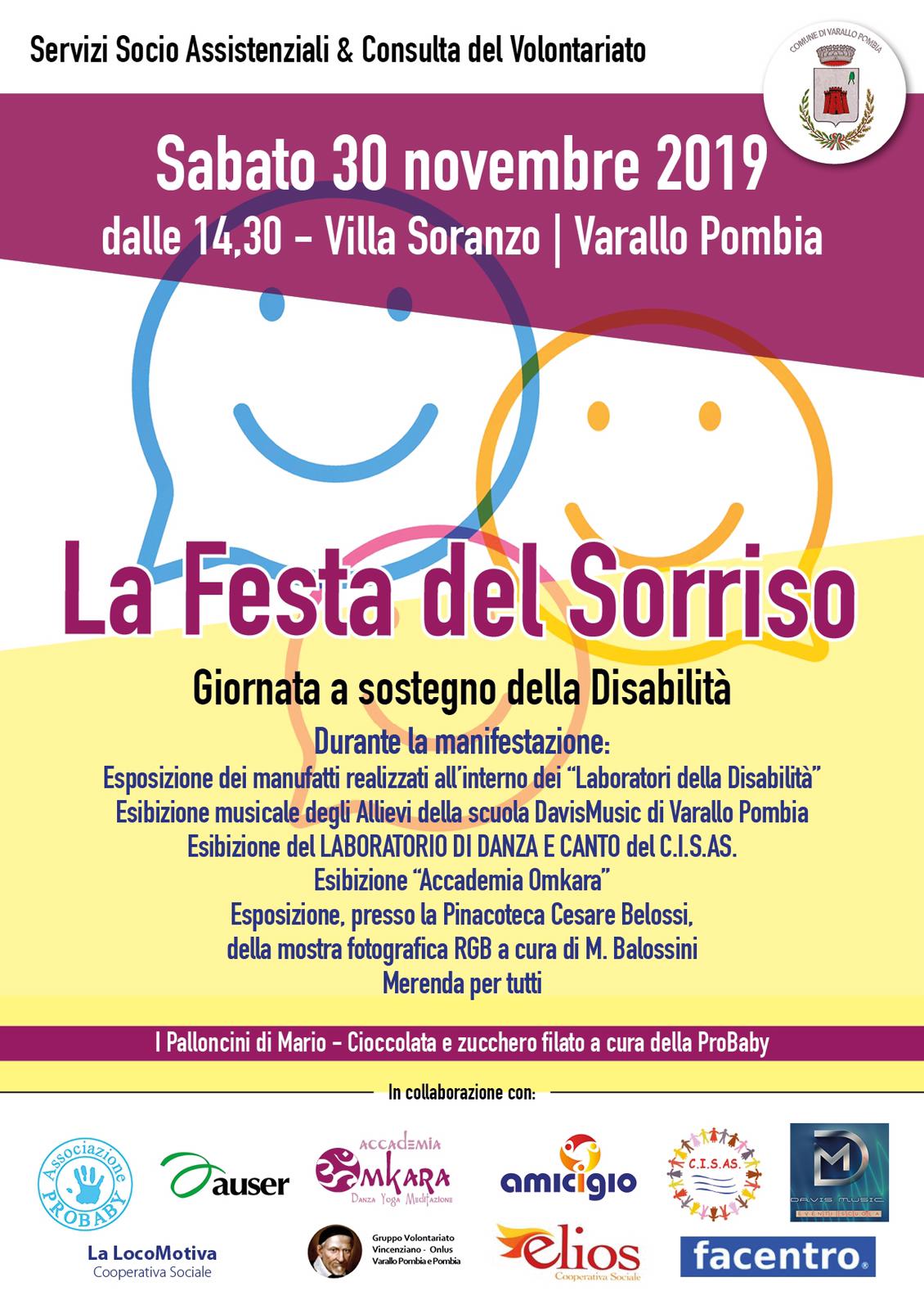 "La festa Festa del Sorriso" giornata a sostegno della disabilità: SABATO 30 NOVEMBRE 2019 dalle ore 14,30 - presso Villa Soranzo, Varallo Pombia.