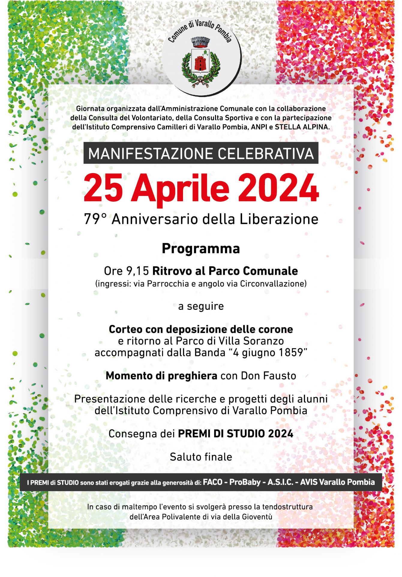Per il prossimo 25 aprile è in programma la manifestazione celebrativa per il 79° Anniversario della Liberazione d'Italia, come di consueto organizzata dall'Amministrazione Comunale con la partecipazione della sezione A.N.P.I. "Rinaldo Bertolotti", l'Associazione Culturale "Stella Alpina" e a tutte le Associazioni del territorio.