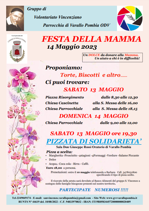 Pizzata di solidarietà: sabato 13 maggio 2023 presso la Sala "Don G. Rossi" Oratorio di Varallo Pombia:, ore 19,30.