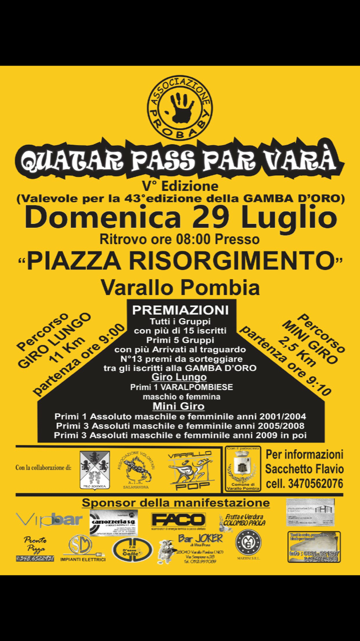 il 29 luglio 2018, l'ASSOCIAZIONE PROBABY organizza la tappa del circuito "Gamba d'Oro" denominata"QUATAR PASS PAR VARA'"