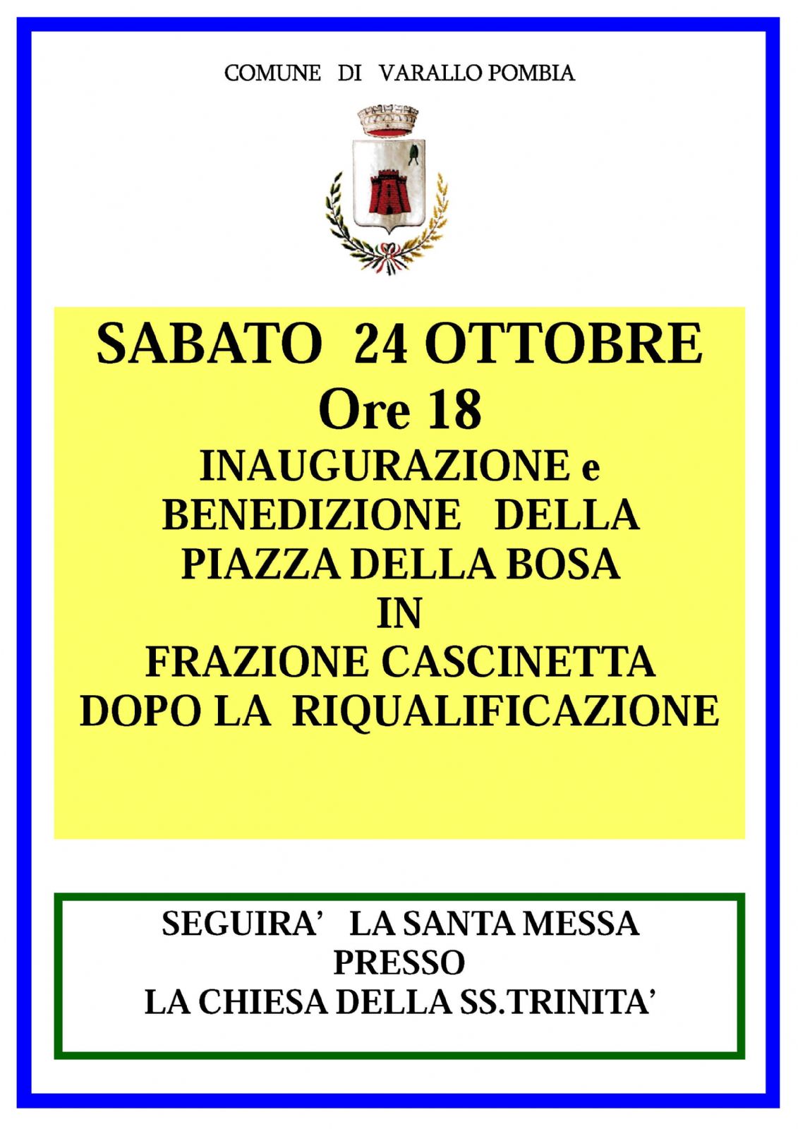 Sabato 24 Ottobre p.v., alle ore 18.00, inaugurazione e benedizione della piazza della Bosa - Cascinetta.