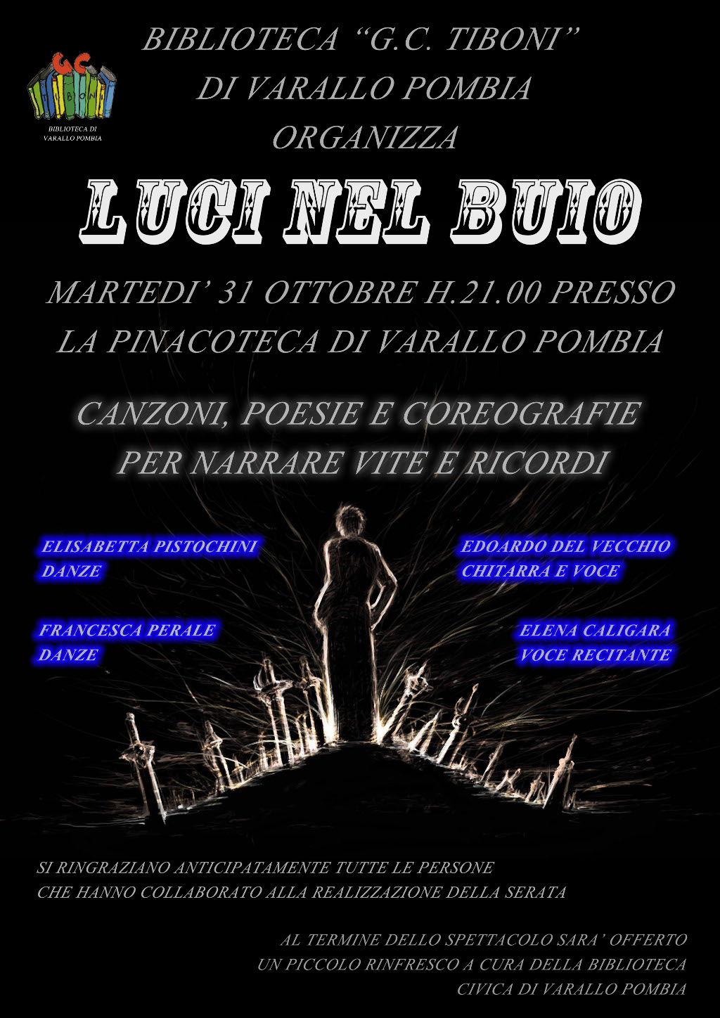 Al termine dello spettacolo sarà offerto un piccolo rinfresco a cura della Biblioteca civica di Varallo Pombia.