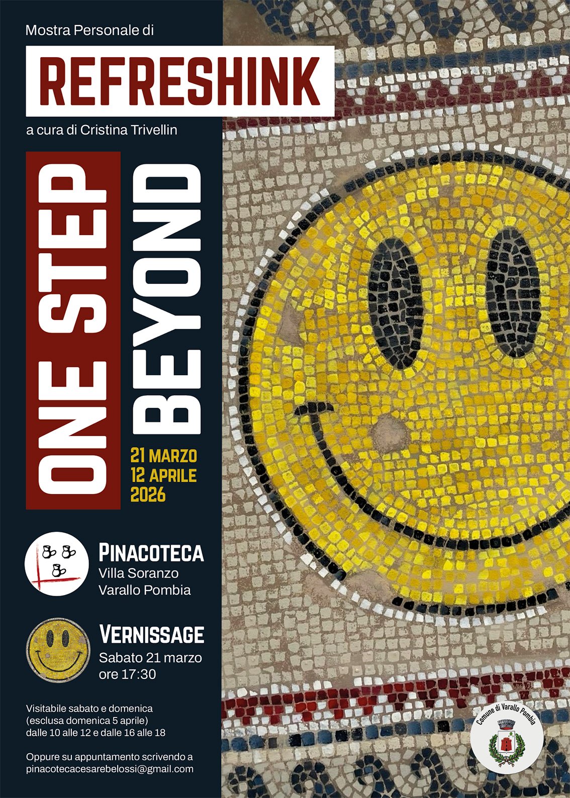 Dal 21 marzo al 12 aprile 2026 alla Pinacoteca di Villa Soranzo (Varallo Pombia) la mostra personale di Refreshink: “ONE STEP BEYOND”. La mostra sarà visitabile tutti i sabati e le domeniche (tranne domenica 5 aprile) dalle ore 10 alle ore 12 e...