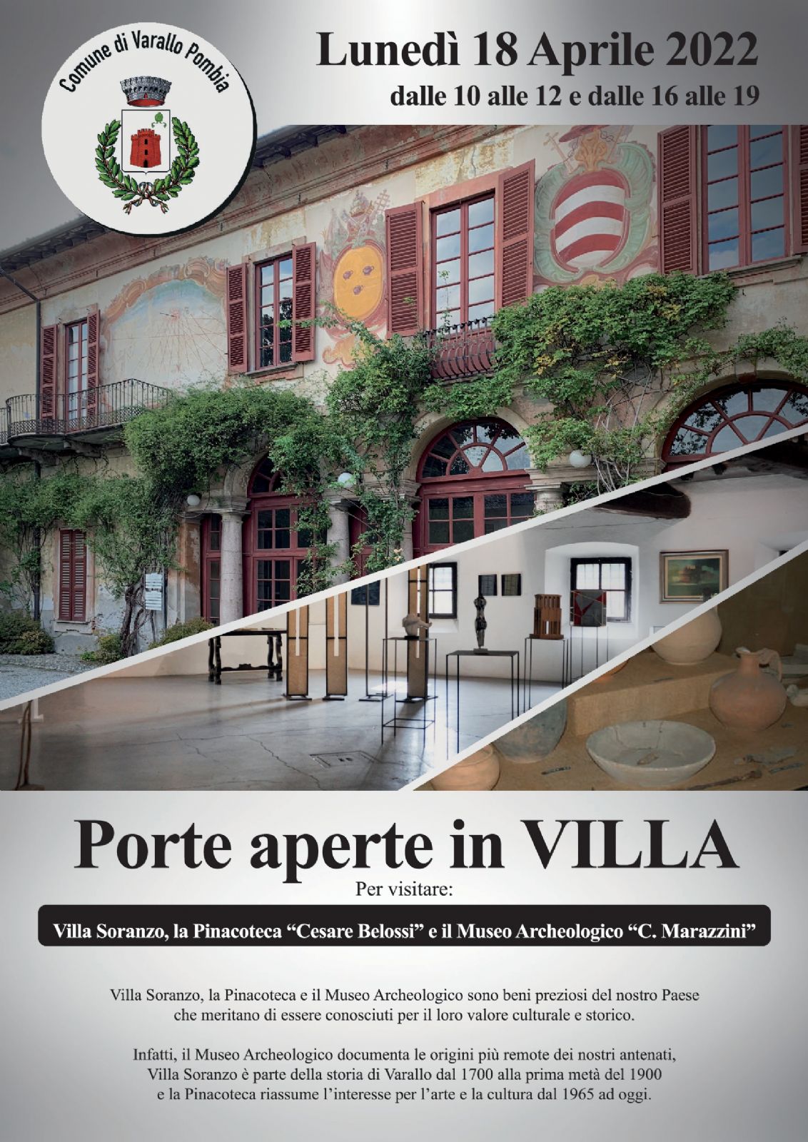 Lunedì 18 aprile 2022 dalle ore 10,00 alle ore 12,00 e dalle ore 16,00 alle ore 19,00 sarà possibile visitare Villa Soranzo, la Pinacoteca "Cesare Belossi" e il Museo Archeologico "C. Marazzini", .