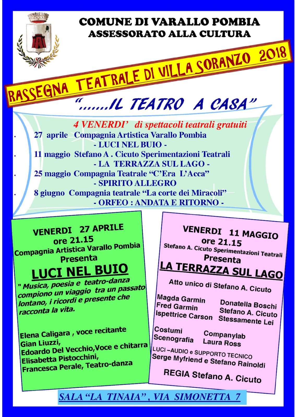 spettacoli teatrali gratuiti sala "La Tinaia":