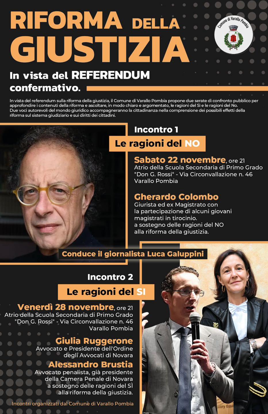 In previsione del referendum confermativo dedicato alla riforma della giustizia, il Comune organizza due incontri per accompagnare i cittadini nella comprensione della riforma e delle sue possibili implicazioni, approfondendo le ragioni del sì e del no.