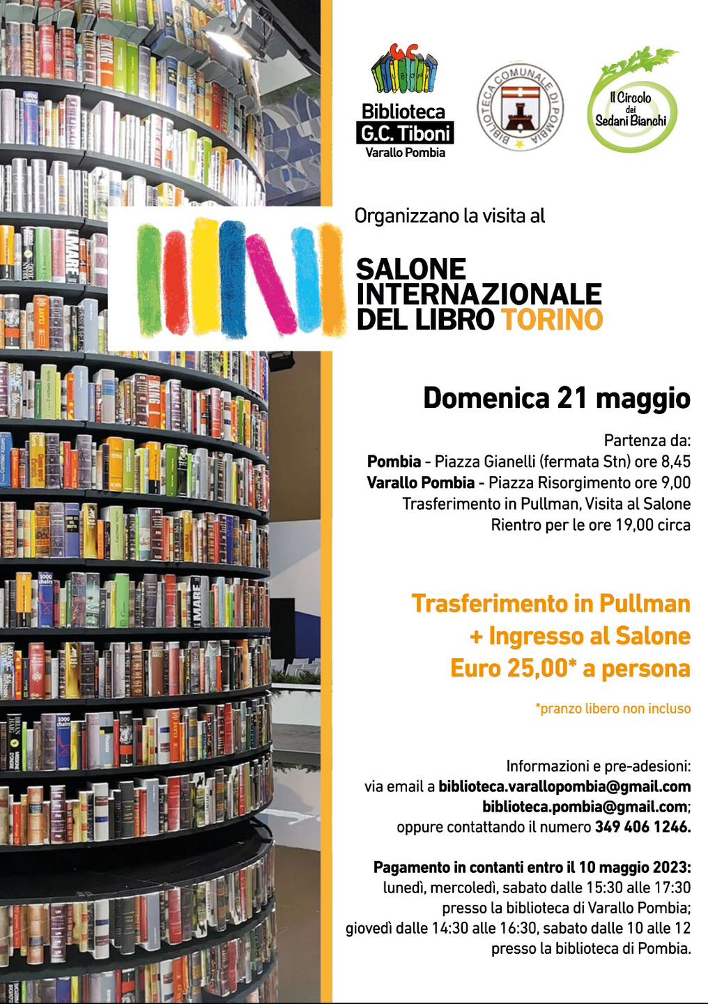 Domenica 21 maggio è in programma la visita al Salone del Libro di Torino, promossa dalla Biblioteca Comunale di Varallo Pombia, dalla Biblioteca Comunale di Pombia e dal Circolo dei Sedani Bianchi.