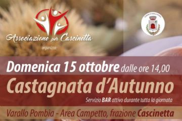 Domenica 15 ottobre dalle ore 14,00 l'Associazione per Cascinetta organizza la Castagnata d'Autunno dalle ore 14,00, presso l'Area del Campetto a Cascinetta - Varallo Pombia (No).