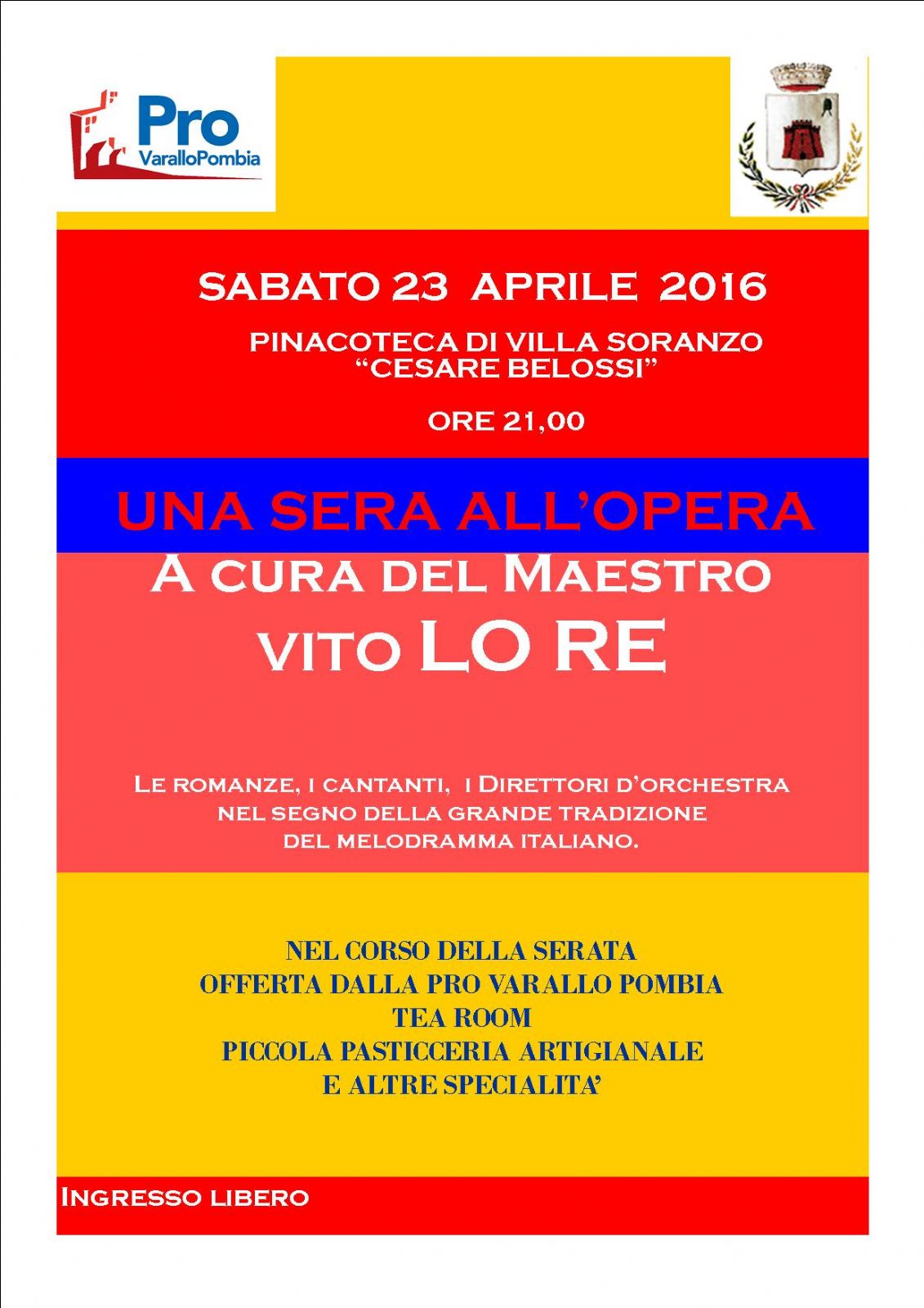 Sabato 23 aprile 2016 alle ore 21,00