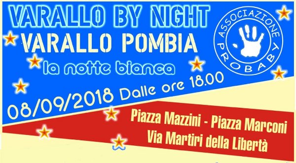 Sabato 8 settembre 2018 a partire dalle ore 18,00 "VARALLO BY NIGHT" nella zona comprea tra Piazza Mazzini - Piazza Marconi - Via Martiri della Libertà: