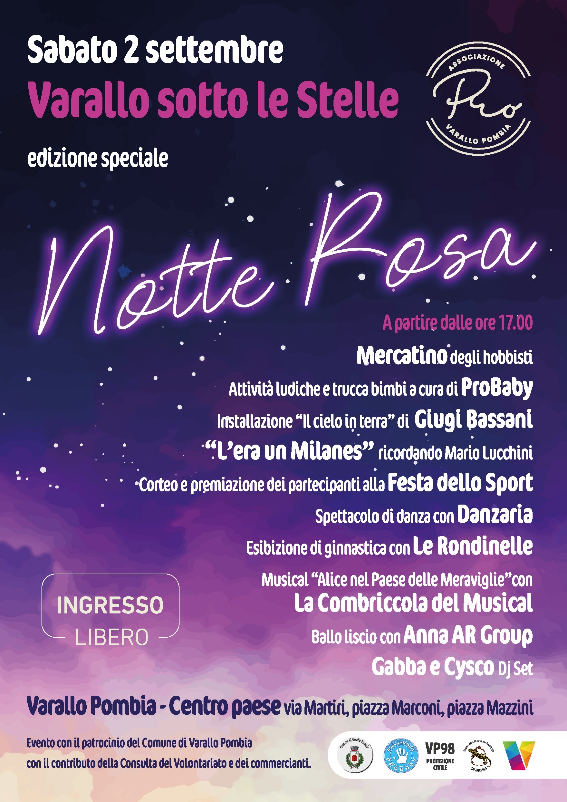 Vi aspettiamo numerosi sabato 2 settembre a "Varallo sotto le Stelle - Notte Rosa", a partire dalle ore 17:00: